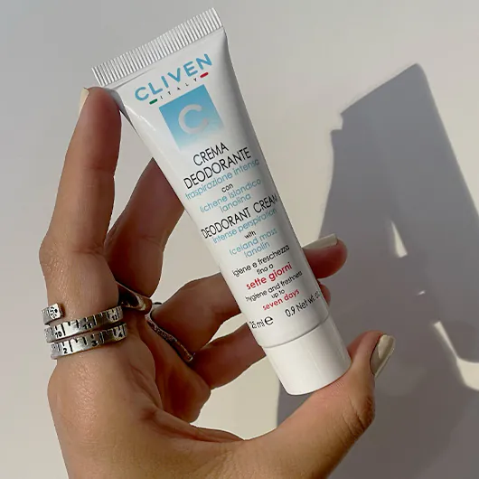 کرم دئودرانت کلیون Seven Days با مکانیسمی هوشمند، نهتنها بوی نامطبوع تعریق را خنثی میکند، بلکه با کاهش فعالیت باکتریهای سطح پوست، به کنترل طولانیمدت تعریق کمک مینماید. عصاره خزه ایسلندی بهعنوان ماده فعال اصلی، خاصیت ضدباکتریایی و ضدالتهابی دارد و محیط پوست را برای رشد میکروارگانیسمهای نامطلوب نامناسب میسازد.